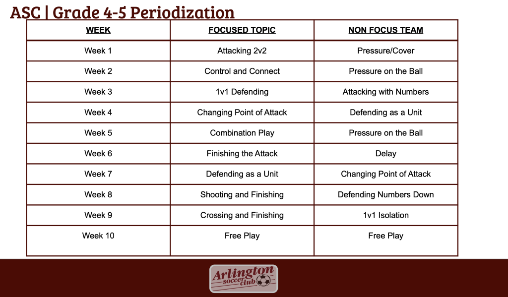For Grade 4 teams with one practice per week, please bear in mind the theme that comes under the Non Focus Team label, as this will bring out the desired behavior for your main topic labeled Focus Team in the periodization grid.